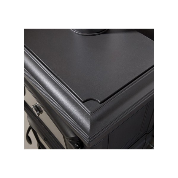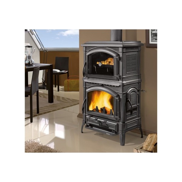 Caractéristiques: • Poêle entièrement en fonte émaillée • Porte de chargement frontal et latéral • Fonte avec haut rendement thermique • Four émaillé (39 l) • Foyer en fonte avec post-combustion • Vitre céramique resistante à 750°