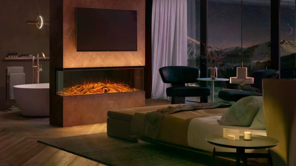 Son système d’installation modulable permet une intégration au mur avec cadre ou encastrée, selon les contraintes et les envies d’agencement. Trois configurations sont possibles frontale, d’angle ou panoramique afin de mettre en valeur la flamme sous différents points de vue et créer une profondeur visuelle saisissante. L’installation plug & play, sans conduit de cheminée ni travaux de maçonnerie, garantit une mise en œuvre rapide et propre, tandis que l’accès frontal facilite les opérations de contrôle et d’entretien.