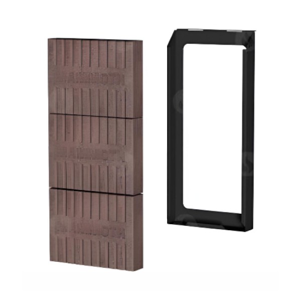Il est compatible avec le bloc latéral AKKUM KV 02 (46 kg), le kit supérieur Top Set 150 mm AKKUM KV 03 (70 kg), le kit supérieur Top Set 200 mm AKKUM KV 04B (149 kg) ainsi qu’avec le kit supérieur Top Set 200 mm AKKUM KV 05 (165 kg). Une inertie jusqu'à 10 heures de restitution de chaleur après l'extinction du feu.