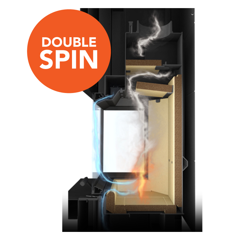 IMPRESSION 3G : l’insert performant et esthétique Pensée pour un raccordement direct à la cheminée, la série IMPRESSION 3G allie esthétique soignée, performance énergétique élevée et grande simplicité d’installation. Elle se distingue par une porte relevable à double vitrage, une chambre de combustion habillée du matériau IGNITON — disponible en noir élégant ou en gris clair — ainsi que par le système innovant DOUBLE SPIN, garant d’une combustion propre et efficace. Dans cette configuration, aucun module d’accumulation n’est requis : l’insert offre à lui seul une chaleur confortable et adaptée à un usage quotidien. La stabilité de la combustion est optimisée grâce au système EAI (admission d’air extérieur), facilement raccordable via l’adaptateur AIRBOX.