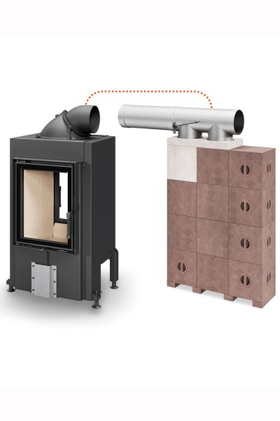 Équipé de portes à double vitrage avec verre décoratif, il limite le rayonnement direct tout en assurant une répartition plus douce et équilibrée de la température dans les deux pièces. L’intérieur est habillé de briques réfractaires en chamotte haute densité, conçues pour résister aux fortes sollicitations thermiques et renforcer la capacité d’accumulation.
