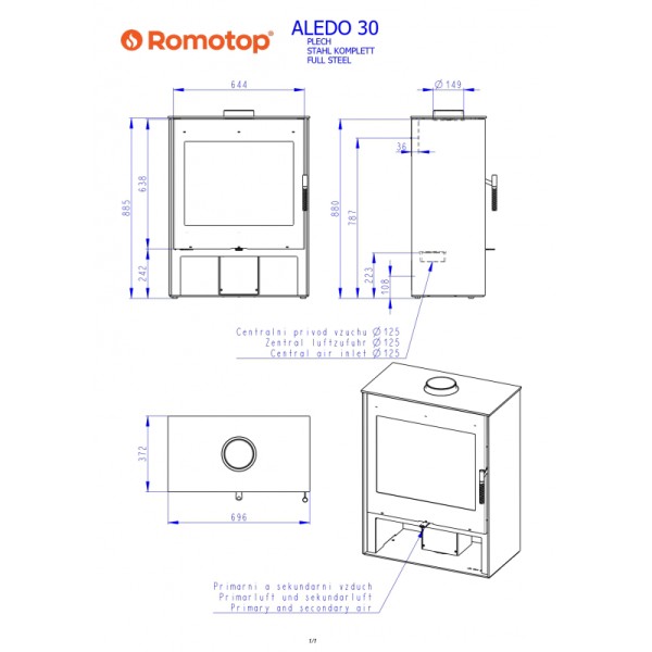 Caractéristiques techniques du produit Poêle à bois ALEDO grandes bûches de 50 cm