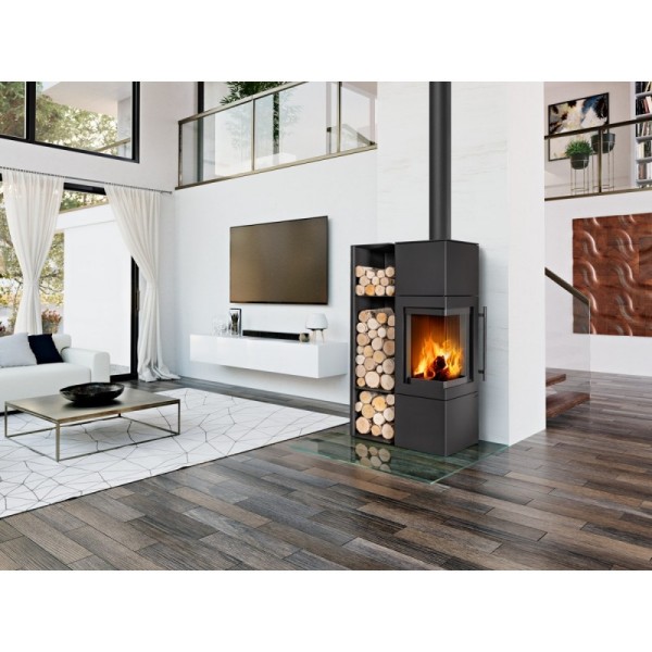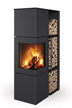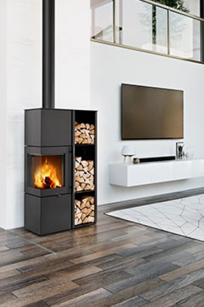 Poêle à bois d’angle moderne en acier, l’ESQUINA H accumulation intègre désormais un nouveau bloc interne de 55 kg placé directement au-dessus du foyer. Cette masse thermique doublée permet d'emmagasiner deux fois plus d'énergie pour une restitution de chaleur encore plus performante. Profitez de 5,5 heures de douceur supplémentaire, prolongeant ainsi votre confort bien après l’extinction des dernières braises tout en optimisant votre consommation. Possibilité d’agrémenter l’ensemble avec des bûchers latéraux pour un design complet.