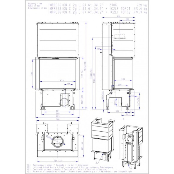 Description du produit Foyer porte coulissante IMPRESSION C 2G L 67.61.34.21 - 2 angles - Chamotte noire