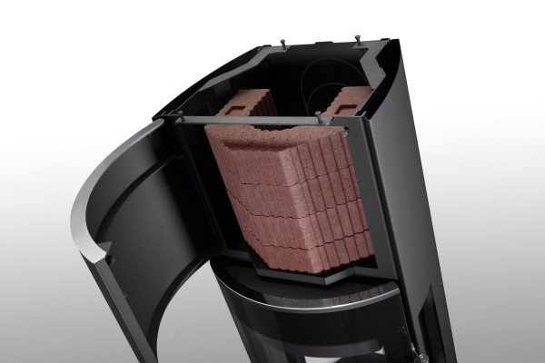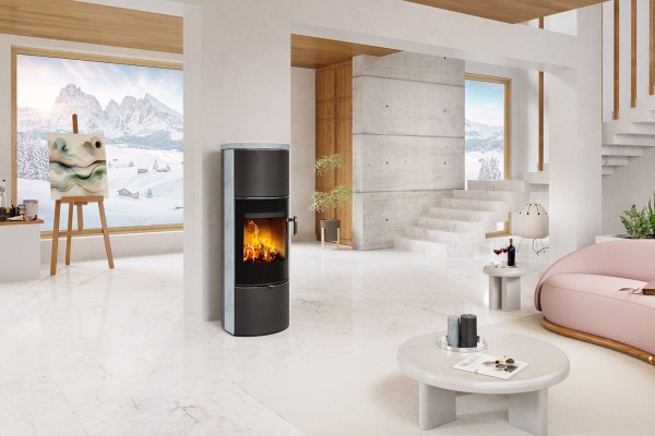 HIERRO H SE offre une vision panoramique du feu grâce à ses deux vitres latérales. Sa silhouette élancée, son inertie généreuse et son design premium en chamotte crème en font un appareil d’exception.