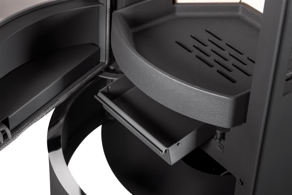Le poêle HIERRO T SE F6 allie charme et raffinement intemporel. Son intérieur en foyer béton noir apporte une touche de caractère et de modernité qui met en valeur son design épuré.