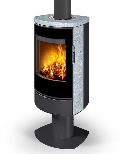 Poêle à bois moderne HIERRO T SE F6, foyer en béton noir Pierre Ollaire Noir