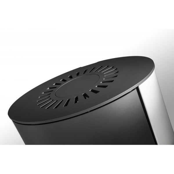 Le LUGO N ACCUM est un poêle à bois design avec un module pour chauffage par accumulation (de 73 kg), ce qui lui permet de bénéficier d'une restitution de chaleur de 5 à 7 heures supplémentaires une fois le feu éteint.