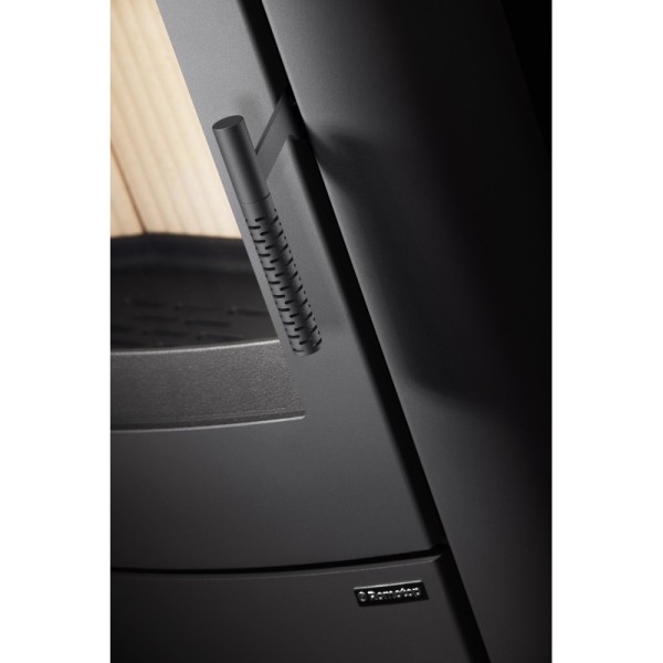 Le poêle à bois NAVIA est conçu pour un confort maximum et un entretien très facile garantissant tout le confort. La fermeture de la porte à trois points assure une parfaite étanchéité et une combustion optimisée, tandis que la porte acier élégamment intégrée facilite la manipulation des bûches de bois. Le foyer, spacieux, permet d'utiliser des bûches jusqu'à 50 cm de longueur.