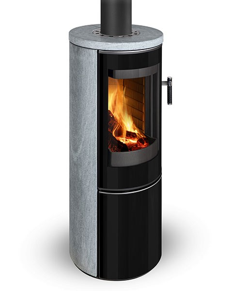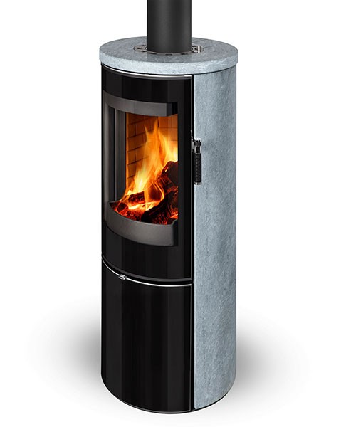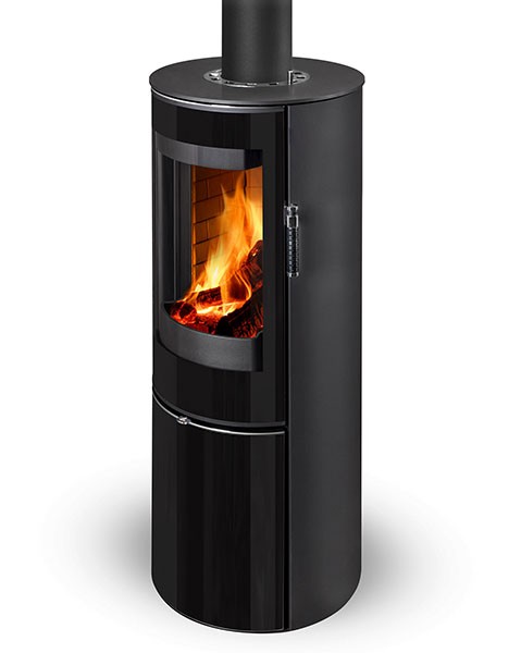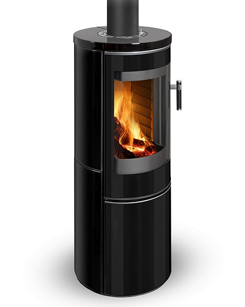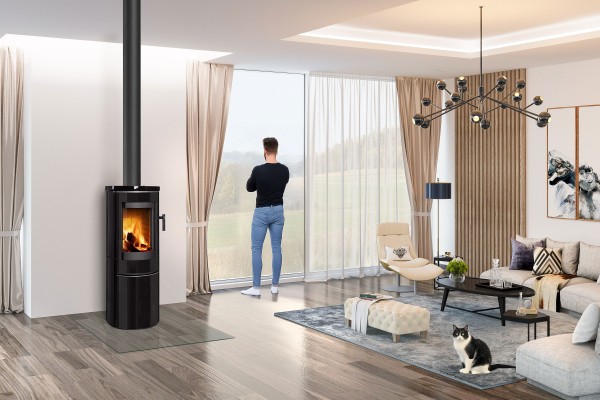 Le poêle à bois Vulsini EX de Storch, avec sa forme arrondie, offre une esthétique enveloppante.